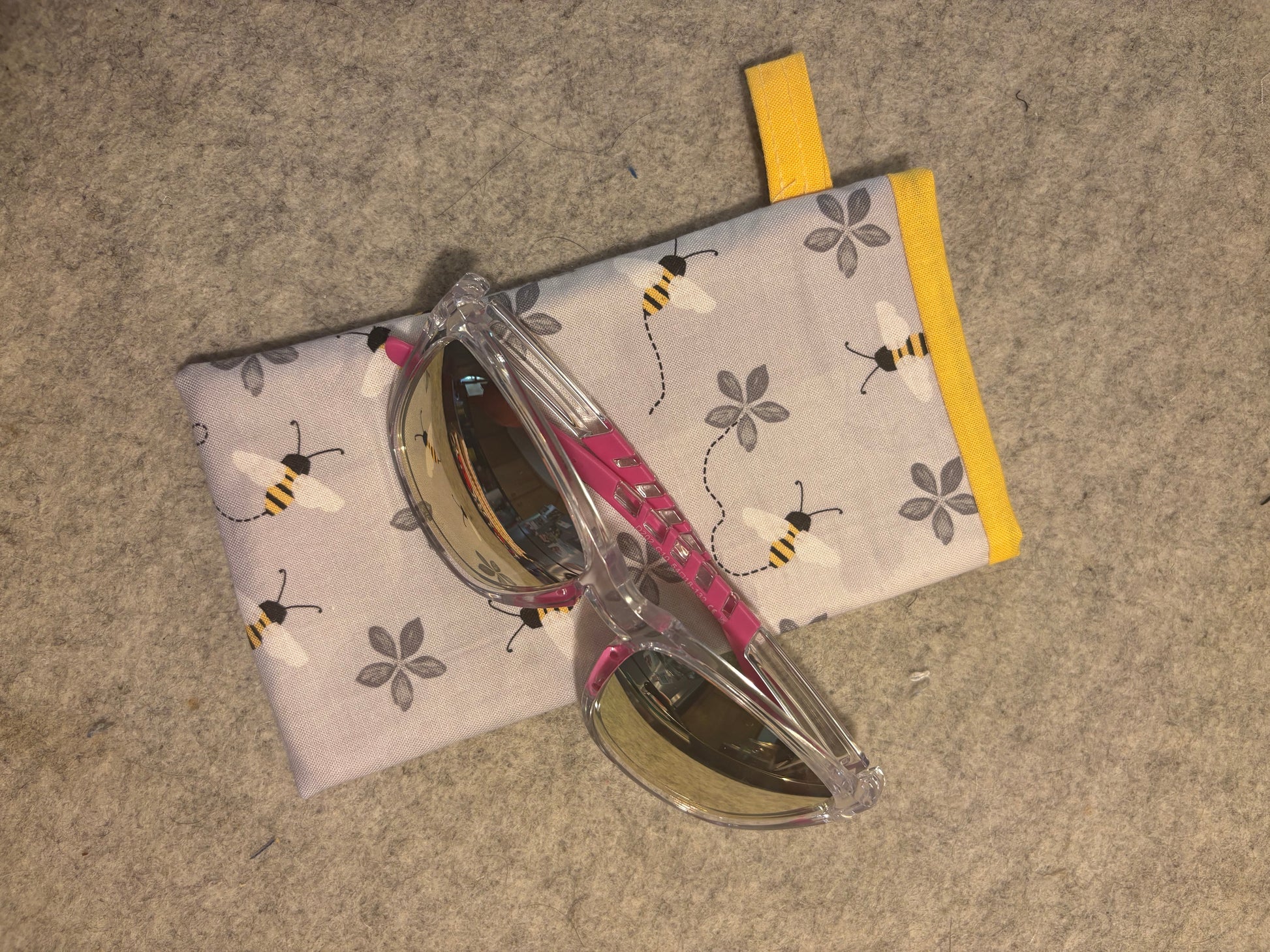 Padded sunglass case. Each case is made of cotton fabric and is lined for extra padding. The case is 6 3/4 long X 4 3/4 wide. Each case comes with a snap for closing and a side loop you can attach any clip to..