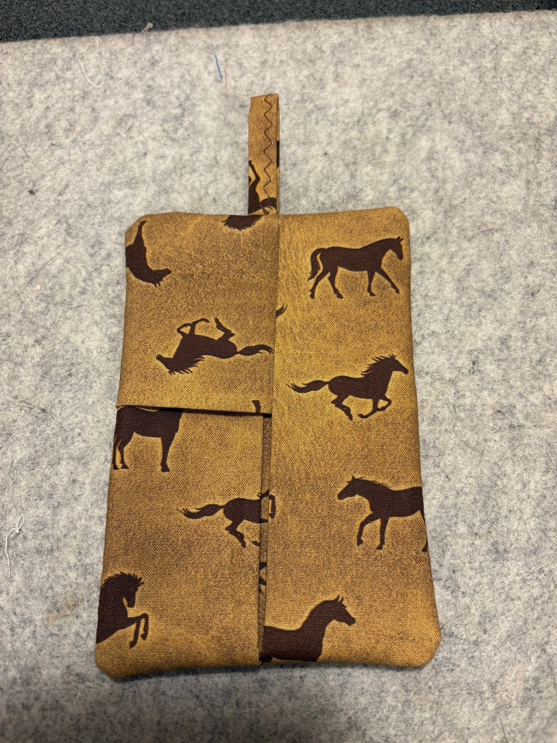 Tissue holders are 4 X 6 and come with a loop. These hold the travel size tissues no buttons or zippers, easy to install. The holders are wash & dry able.